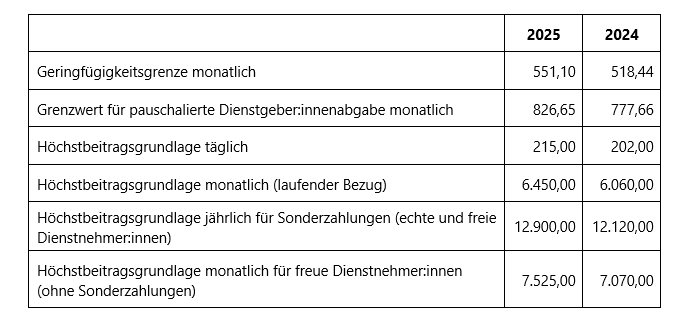 Unter Berücksichtigung der Aufwertungszahl von 1,063 betragen die Sozialversicherungswerte für 2025 voraussichtlich (in €):